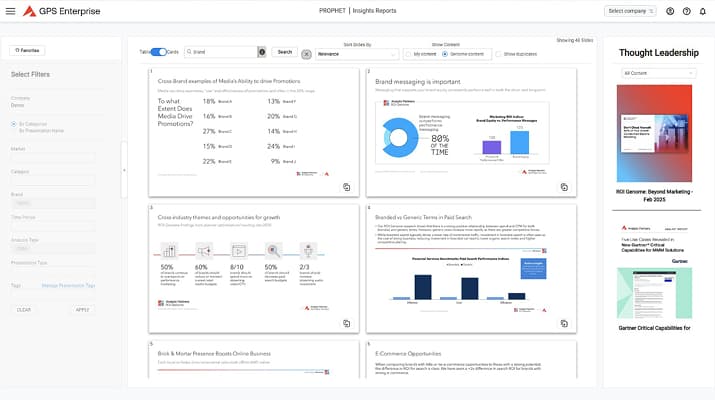 我们的GPS Enterprise®(GPS-E)商业决策平台,凭借值得信赖的技术,已为众多全球领先品牌赋能决策。融合ROI Genome®营销智库25+年实践经验,它不仅揭示最复杂的业务驱动因素,还能清晰定位增长机会。